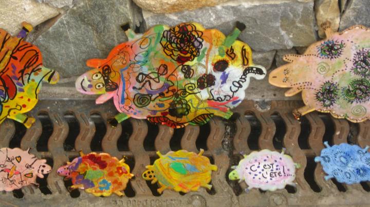 In August 2017, we took part in the wonderful 🐑 « Moutonnades » workshop with Anaka – a mix of children and adults (which I thought was lovely), we all 🎨 painted plexiglass sheep (which we took home!). It was a wonderful, wonderful workshop!