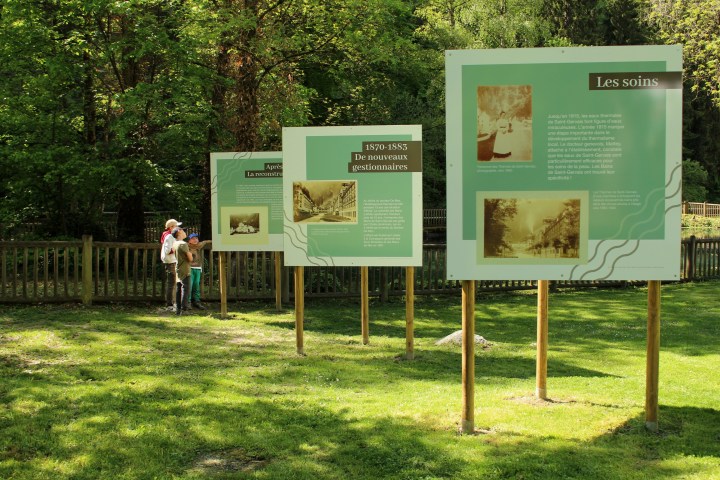 Right by the duck pond, you’ll find some new panels explaining the history of the Parc Thermal and the hot springs . . .