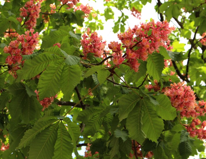 A walk along the quais in Sallanches when the 🌳🌰 marronniers (chestnut trees) are in bloom (pink and white flowers) is lovely, as the trees form a tapestry above one’s head, providing plenty of shade . . . the bridges across 💦 the Sallanche river are also adorned with 🌷 flowers, making the walk even prettier!