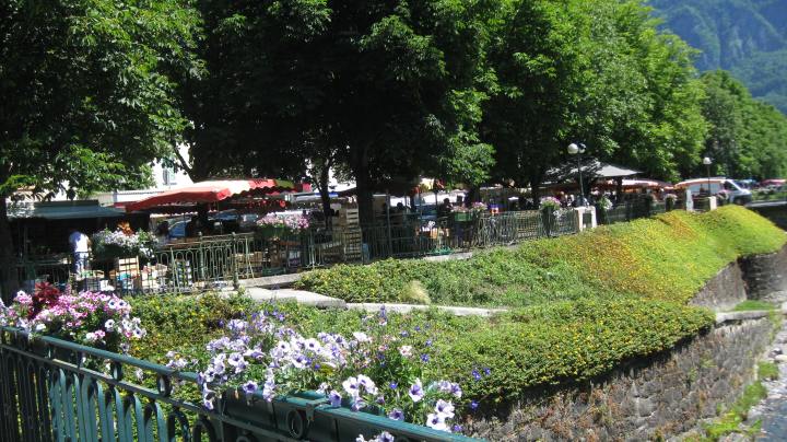 A trip to 🍎 Sallanches’ Saturday morning market (which is bustling and lovely) is one way to experience the joys of the riverside; but then you do also have to share it with all the market stalls and market-goers (not so easy on a draisienne!).