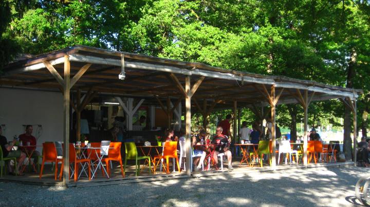 - there are also 🥗 restaurants: at the nearby campsites: at the ⛺️ Camping des Iles, you have the Restaurant ô pied du lac / ⛺️ Camping Mont-Blanc Plage – if you eat here, then you can have a dip in their private lake, Lacs de la Cavettaz! / and at ⛺️ Camping Village Mont-Blanc (🥗 Le Restaurant Écureuil – a short walk round the corner from Camping Mont-Blanc Plage; it has a lovely terrace and its own little lake with fish to spot, and a small playground);