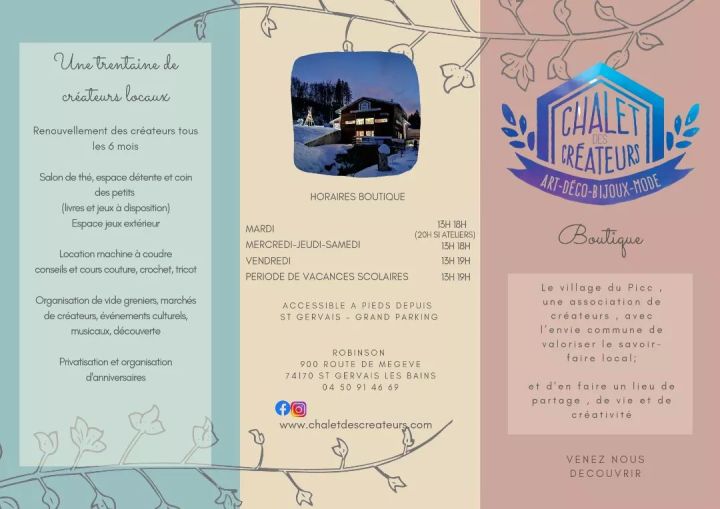 🗓 opening hours: 🎨 Le Chalet des Créateurs is open from Tuesday to Saturday from 10h to 12h and from 15h to 19h;