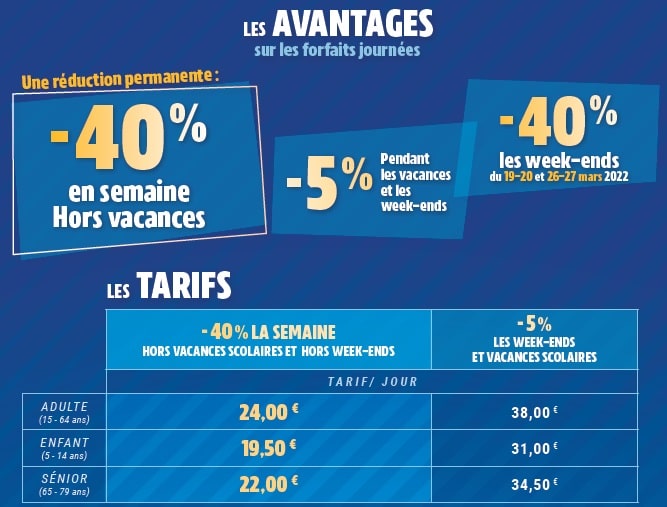 With the les affûtés card (20€), you get huge discounts – and the discount increases once you’ve skied x10 times! And, the card works like at the péage, (the machines clock you in on each ski day), so you avoid the lines at the caisses!
