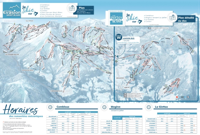 - 🎿 Domaine Evasion Mont-Blanc – 445km of pistes, allowing access to Combloux, Megève, Saint-Gervais, Saint Nicolas de Véroce, Les Contamines-Montjoie and La Giettaz;