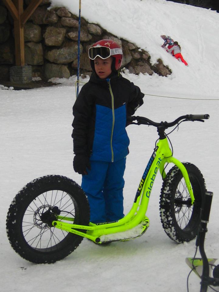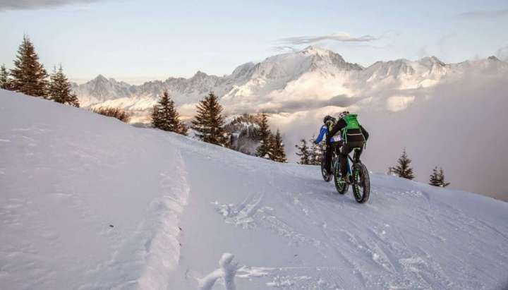 In 🗻 Combloux, you can take a guided fat bike tour with Alpes Aventures, and these guys also offer descentre trott sur neige (snow scooters) from Combloux (from the sommet of the Télésiège de Beauregard – 1500m – a one hour descent of 600m, between ski pistes and forest, to the centre of Combloux / suitable for children 1m35) or La Giettaz (see here);