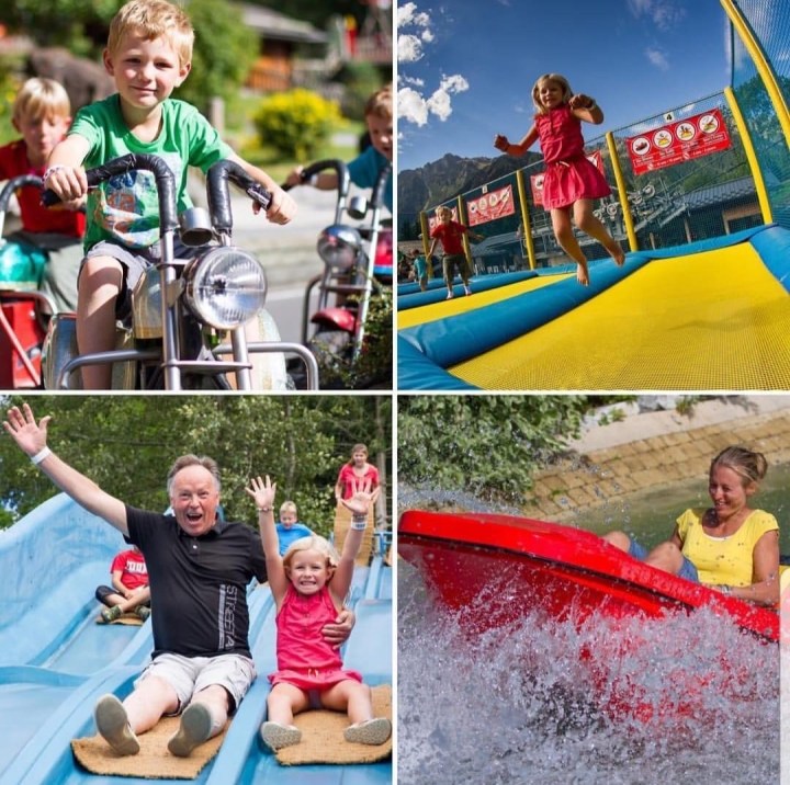 As well as the 🛷 Chamonix Luge-Alpine Coaster, which is open year-round, there is a 🌈 FREE playground, great slides, motorbikes and cars to ride, diggers to operate, trampolines, and 💦 water-themed rides.