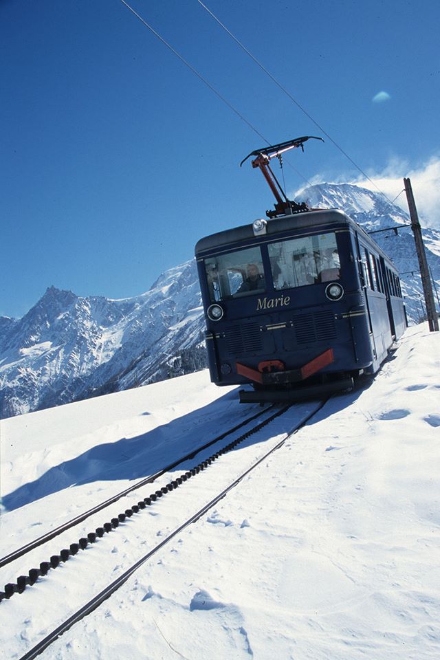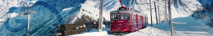 The vintage 🚞 Tramway du Mont Blanc is a rack & pinion train that takes you from Le Fayet SNCF (railway station) or Saint-Gervais-les-Bains, up to the Plateau of Bellevue (stopping at the Col de Voza), through 🌲 the snow-covered forests.