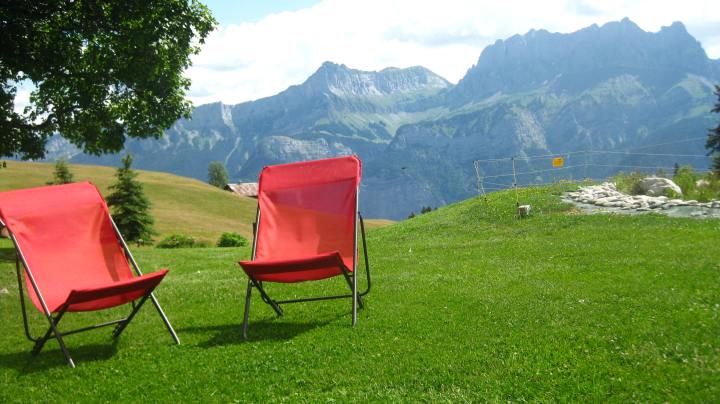 ☀️ sun-loungers and beanbags – there is a comfortable place to relax out on the lawn, facing the majestic Mont-Blanc! Perfect after a hike . . .