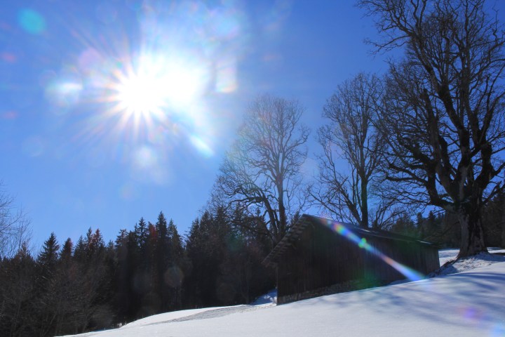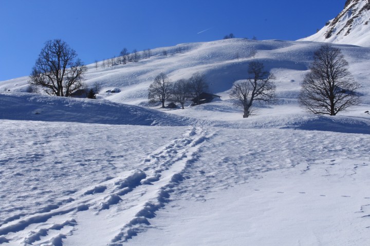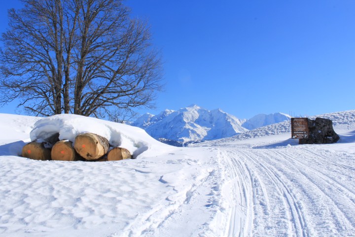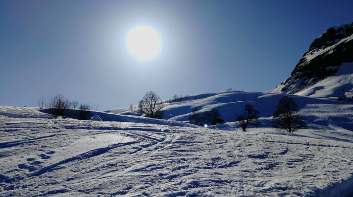The hike up to the ☕️ Tornieux, Mayères or Doran refuges is a popular ❄️ winter activity for local Sallanches families – there are the snow shoe trails, and amongst these, the well-maintained path to the ☕️ Refuge du Tornieux. On this path, you will cross: ski randonneurs, snow-shoers, runners, dog-walkers and people sledging down! As the path is so well maintained (damé) for 🛷 the sledging activities offered by the refuge, you can generally hike without the need for snow-shoes (though a crampon attachment for your hiking boots is a good idea). You do need to keep your wits about you, because of the 🛷 sledges descending at great speed; be ready to jump out of the way! The hike takes about 1h30 to 2 hours (depending on food and photo breaks).