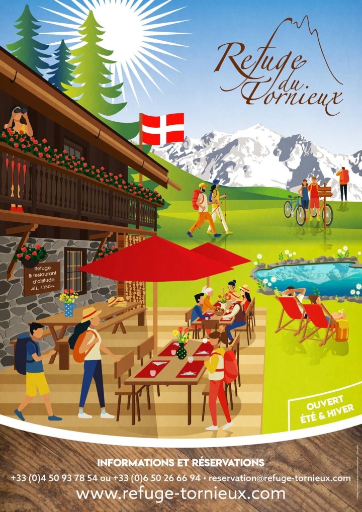 website / Facebook page / Instagram address: 546 route de Passy, 74700, Sallanches tel: +33(0)4 50 93 78 54 / +33(0)6 50 26 6694 email: contact@refuge-tornieux.com