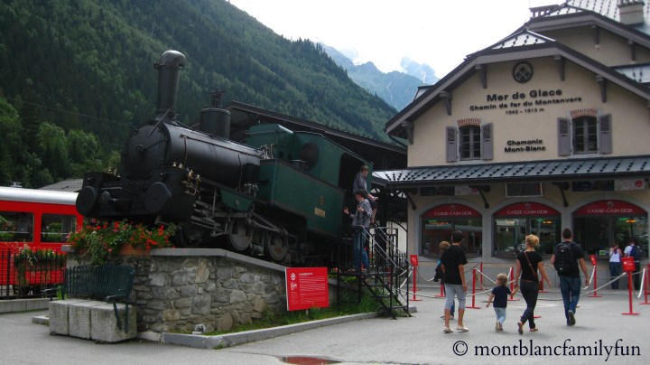 The 🚉 departure station for the Montenvers train is just behind the Gare SNCF, and there is an 🚂 old locomotive for children to play on as they wait.