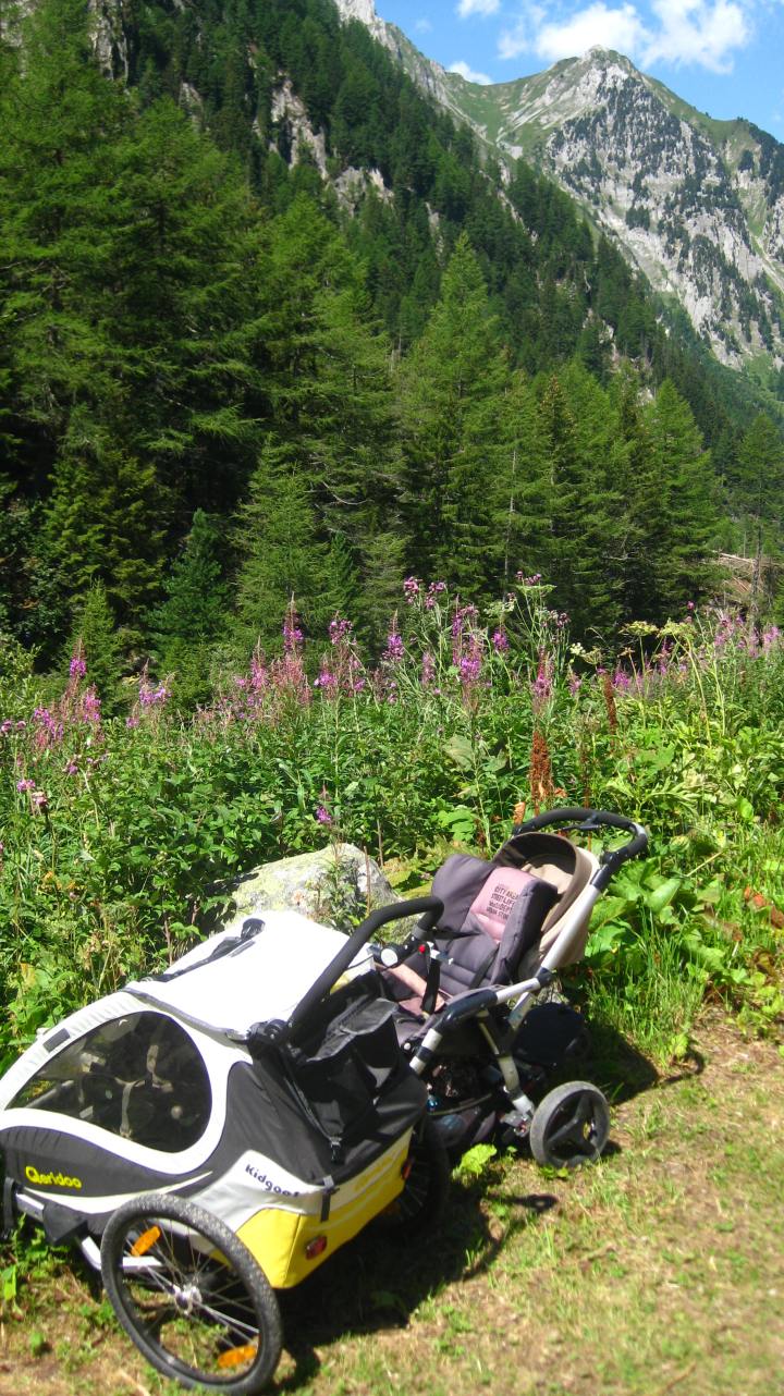 The path of the bisse was partially destroyed in 2018 by a landslide, and though an alternative path was cleared, access was not then possible with a buggy. The path has now been totally renovated, with a metal passerelle in place where the path had collapsed. This passerelle is open to all-terrain buggies (standard size, not double!), though the rest of the trail is quite bumpy terrain!