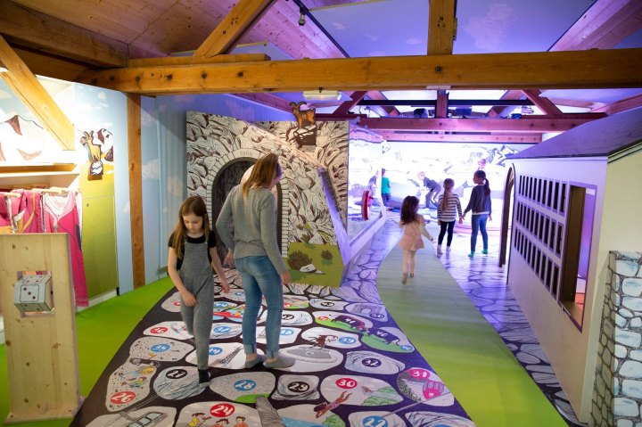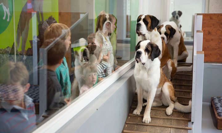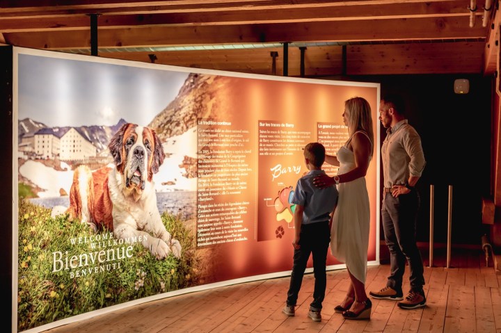 On the first floor, visitors can learn about the history of the Great Saint-Bernard Pass and on the second floor there is an interactive exhibition about Saint-Bernard dogs for children.