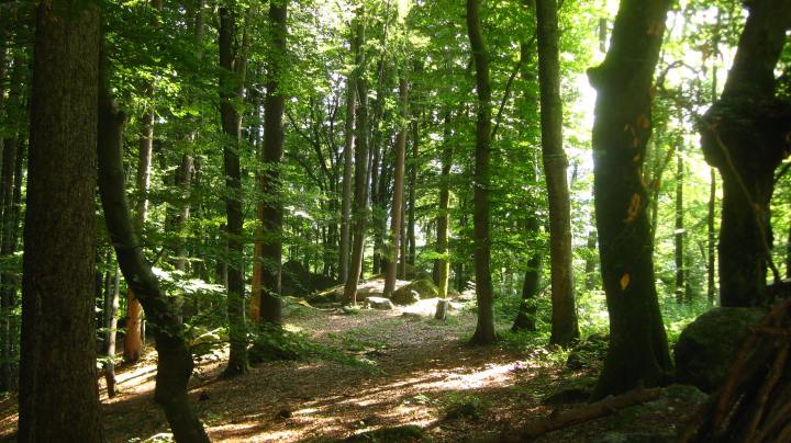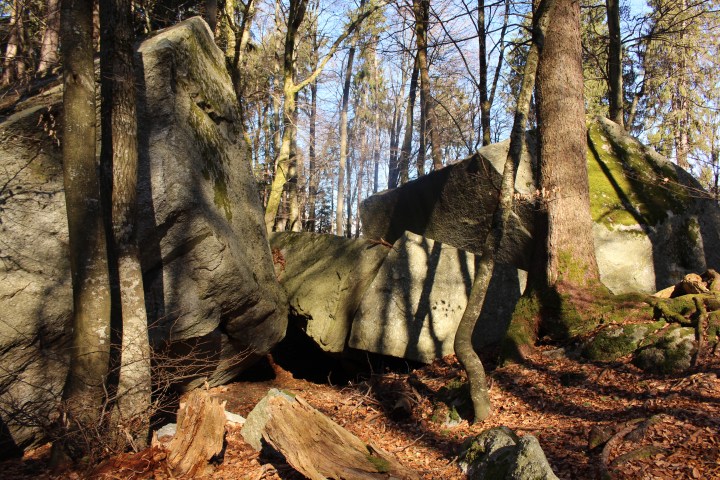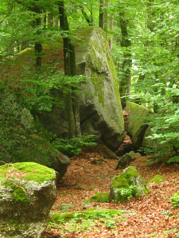 [ DISCLAIMER – 🧗♂️ bouldering and clambering on the rocks can be dangerous, and if you and your family do so, it is at your OWN RISK. NEVER leave small children unattended; many have no sense of fear, and some of these boulders are several metres high. If you intend to do some bouldering, go properly equipped and make sure that the rock is not slippery due to wet weather. In addition, the ⛈ July 2019 storms have left their mark: there are some uprooted and fallen trees, and some not yet secure, so be cautious! ]