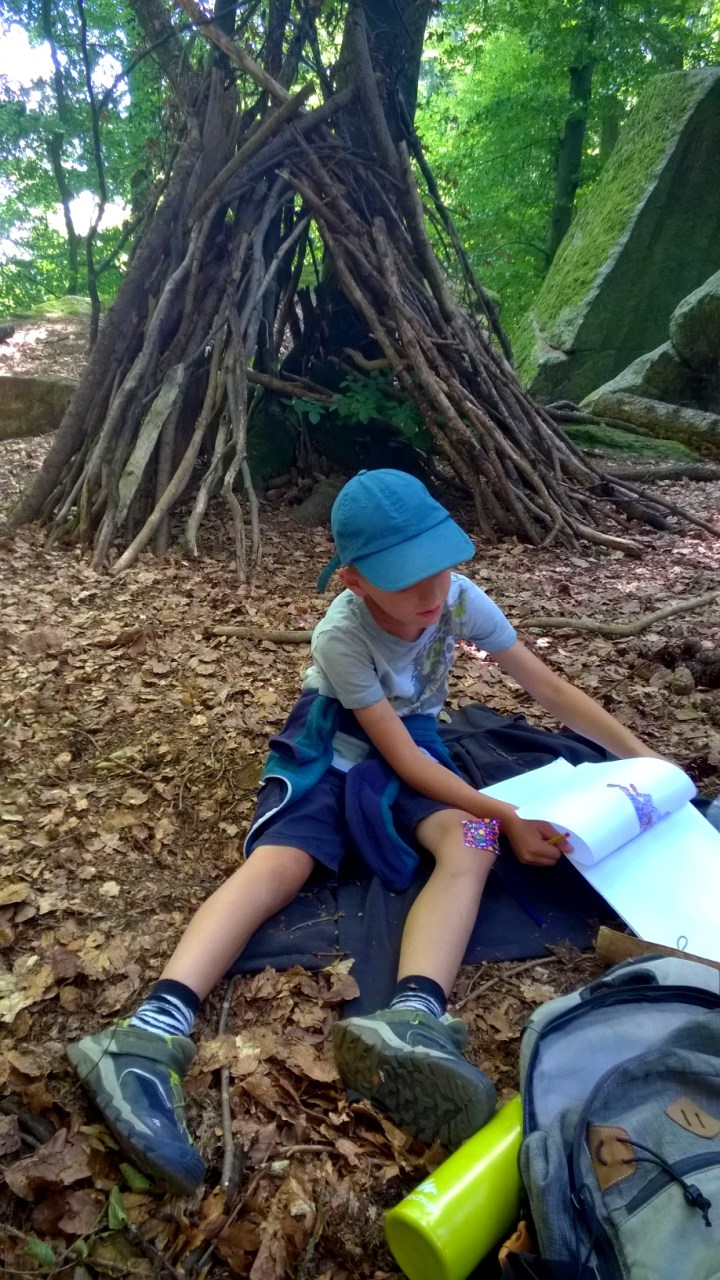 After that first visit, we returned en famille numerous times over the ☀️ summer and 🍁 autumn; a memorable visit being with friends and their 🐶 new puppy! Sometimes we’ve encountered boulderers and sometimes we’ve had the 🌲 woods and rocks to ourselves! Each visit is different, each equally magical: we’ve collected wood and made cabanes (and even imprisoned Grandpa in one!); 🧗♀️ we’ve clambered on the rocks; and even been inspired to draw and produce some 🎨 LandArt . . . on some visits, we have spent HOURS . . .