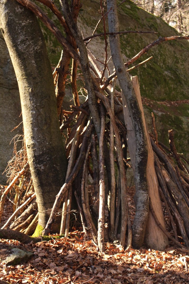 Another activity in the 🌲 Médonnet and La Pesse woods that my boys enjoy (and I must also admit that I have real penchant for this myself!) is cabane-making. There are many twigs and branches lying about (especially since the storms), asking to be made into a hut.