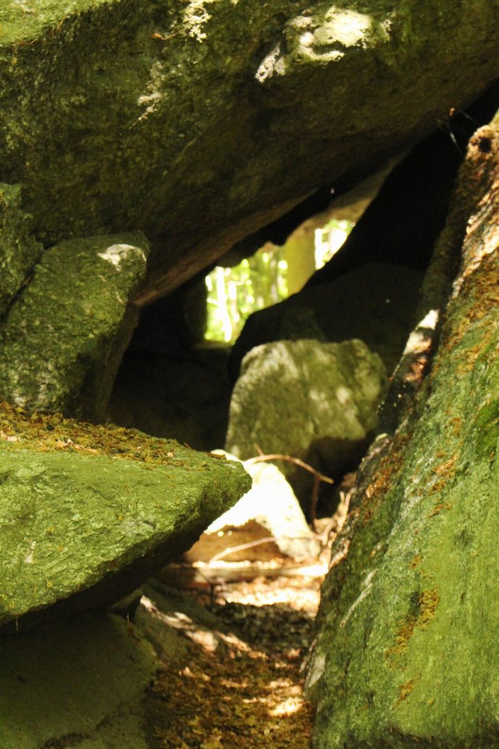 What strikes you as you enter the 🌲 La Pesse and Médonnet woods are the 🧗♀️ huge granite boulders, many covered in a thin layer of moss. Some of these boulders hide little passageways and shelters, perfect for hide-and-seek.