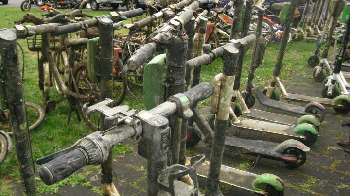 These 🛴 electric trottinettes were recently fished out of Lyon’s two rivers by divers . . .