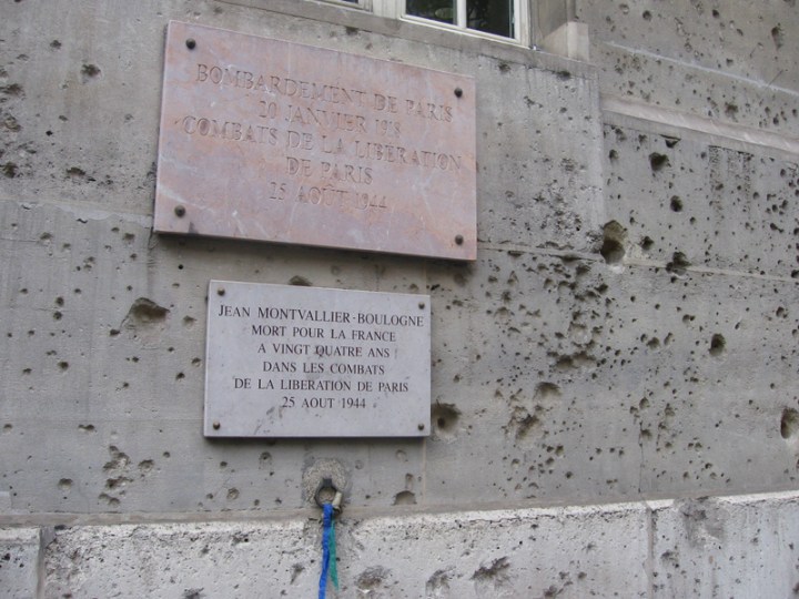 🔹Paris during WWII – Paris was occupied by Nazi Germany from June 1940 until 24th August 1944, and German troops took control of Paris and many of the landmarks and hotels were used as their base (meanwhile, the puppet French state under Maréchal Pétain relocated to Vichy, while Géneral Charles de Gaulle organised the Resistance forces from London). During the Nazi control of the city, Jews in Paris were forced to wear the yellow Star of David badge, and then French police – on orders of the Germans – rounded up many, who were then sent to the Auschwitz concentration camp (there is a moving memorial just behind Notre Dame Cathedral). Meanwhile, the nightclubs of Montmartre remained open, profiting from a new clientele of German officers and soldiers. You can still see 💥 bullet marks on certain walls in Paris (see photo below) . . . Paris was liberated by French and American troops between 19th and 25th August 1944, and the next day General Charles de Gaulle led a 🎆 triumphant parade down the Champs-Élysées (see photo below), and established a new government;