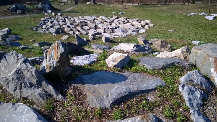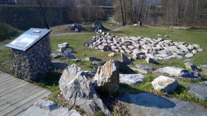 We’ve had a few 🍏 goûter stops here, after swimming lessons nearby . . . it is a good play area for children! Mountain Store, with the help of the 🦌 Centre de la Nature Montagnarde, has set up a virtual small-scale tour of 🏔 our mountains and river valley, with the use of explanatory pannels and features (a rock desert, a gouille, a peat bog, etc . . .).