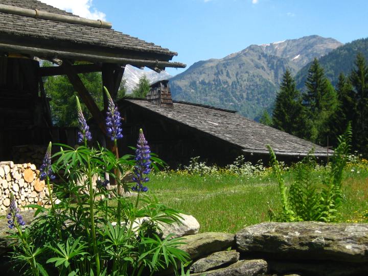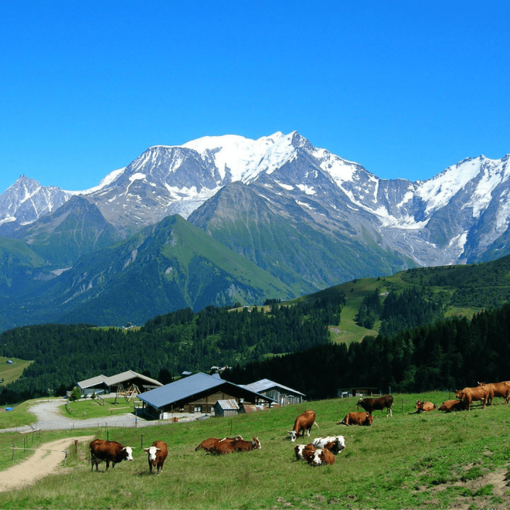 The hike to 🌷 L’Alpage de Charousse (meadow) in Les Houches is one of my favourite short hikes in the Chamonix Valley, and one that MBFF has really enjoyed en famille with two small walkers. The main highlight of this walk is arriving at the postcard perfect meadow – the alpage de Charousse – when the blue and purple lupins are in bloom (May and June time), next to 🏚 the five rustic farmhouses (18th century). A bit further along, and you will find some nice green spots for picnics.