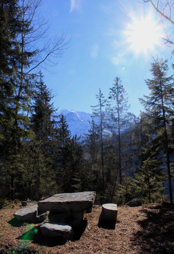 The fabulous 🌉 new suspension bridge in Plateau d’Assy, allows you to walk the ancienne route du Lac Vert all the way to the 💦 Lac Vert – this is a lovely walk, easy and so possible for the whole family, through the 🌲 forest and with magnificent views of the 🏔 Mont-Blanc massif the whole way! You can park at Place Tobé, from there you hike through the forest, and there is 🍏 a picnic table at the bridge!
