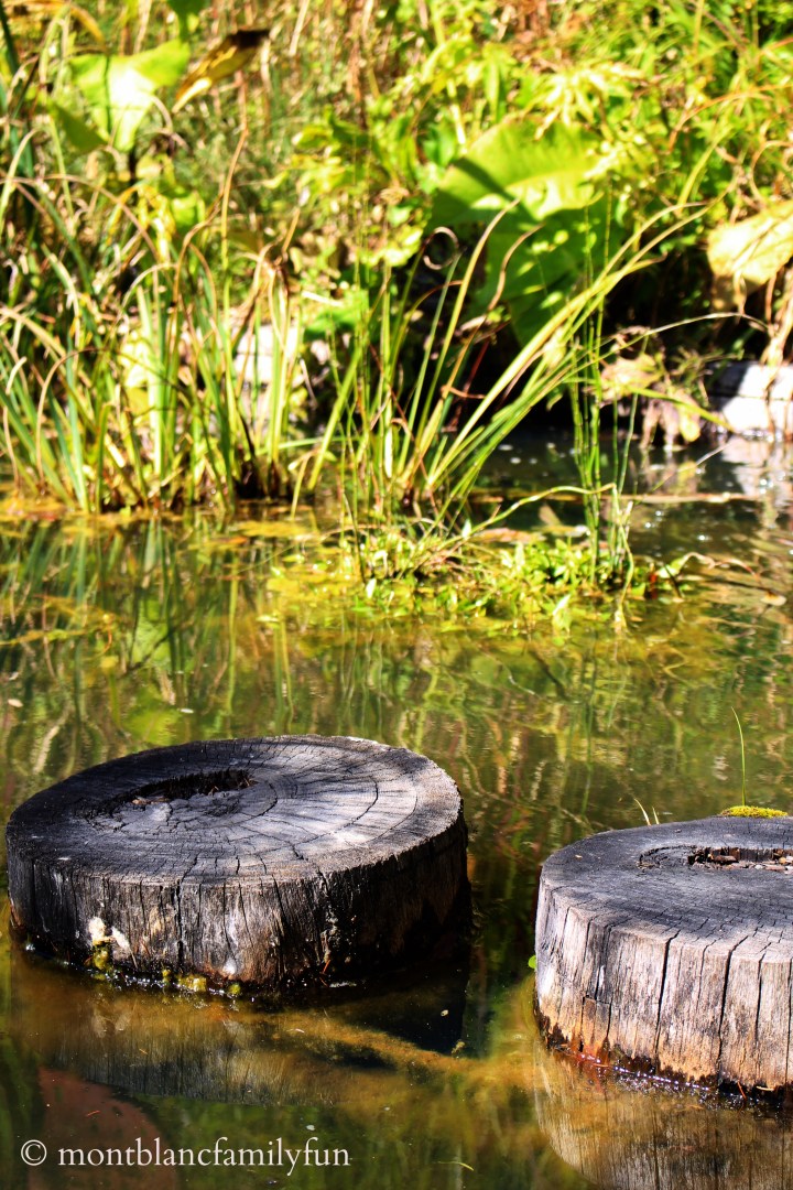 My elder son and I explored the landscaped area around Mountain Store recently, and then we headed down the river pathway to enjoy the art and flora and fauna (we saw 🐍 a grass snake near the ruches!) along the way. In the landscaped area is a small 💦 gouille, representative of 💦 a mountain gouille (small mountain pond), and you might spot some 🐸 tadpoles there (I heard a chorus of frogs just yesterday!) Even if you don’t, this is a great spot to play and picnic;