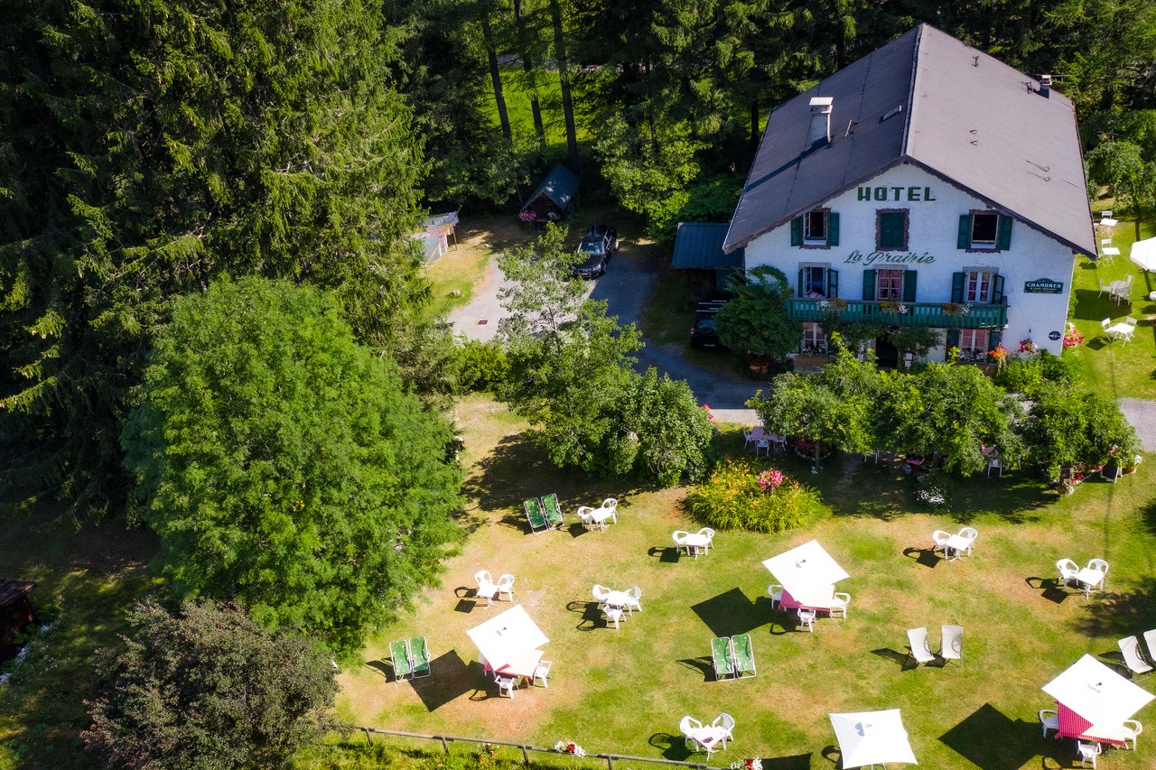 La Prairie is peaceful family hotel, located under ⛰ the Aiguilles des Drus and the Aiguille Verte, and with views of 🏔 Mont-Blanc . . . this guest house and café was built in the early 20th century by Henri Claret-Tournier, a high mountain guide with 99 ascents of Mont-Blanc to his name! As tourists began to frequent the valley, he took the « monchus » up the mountain, while his wife Aline and her daugher Perlina tended to their stomachs! La Prairie was passed down through the family, and has been modernised over the years;