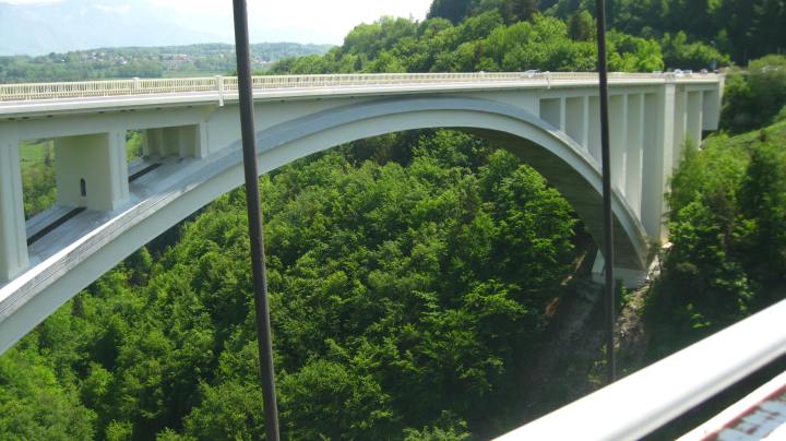The 🌁 Ponts de la Caille are two bridges – located side by side – and they cross the 💦 Torrent des Usses, at a height of 147m.