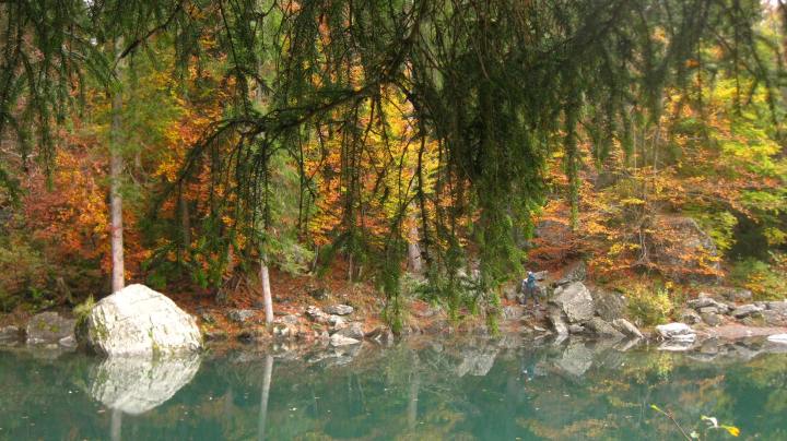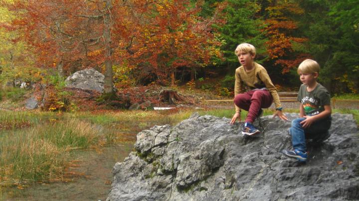 💦 Lac Vert is an ethereal mountain lake at any time of the year, but it really comes alive in 🍂 autumn, when the tarnished leaves of the trees can be seen reflected in its shallow emerald green water. And if you look very, very carefully, you might just see Excalibur rising from the waters (several scenes of the TV series Kaamelott were filmed at the 💦 Lac Vert). With babies, you’ll need a baby-carrier (buggies not possible!), and young children can WALK and scramble (be vigilant at all times, as the rocks can be sharp, the tree roots slippery, and there is always the possiblity of falling into the lake! Also, some of the wooden walkways may be submerged in autumn!). The loop around the lake will take about 20 to 30 minutes with little ones;