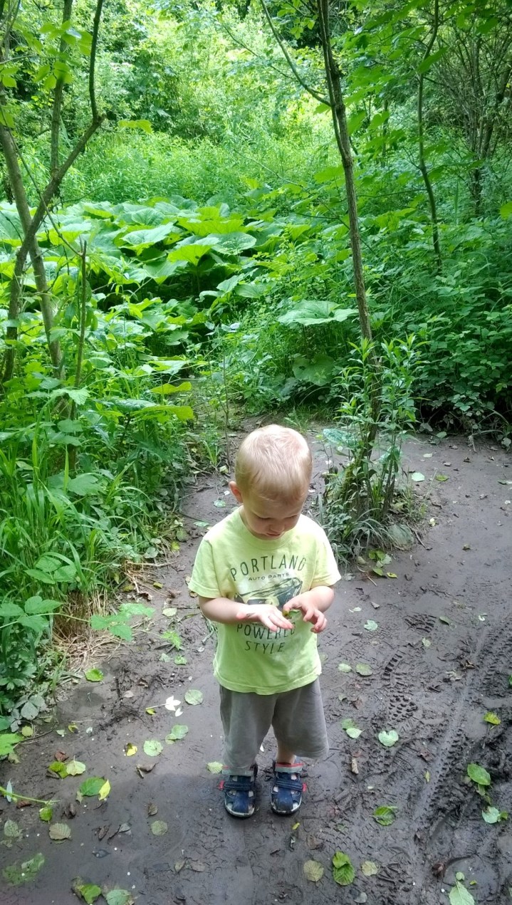 I love this photo of my then 2 year old examining 👣 some muddy human footrprints!