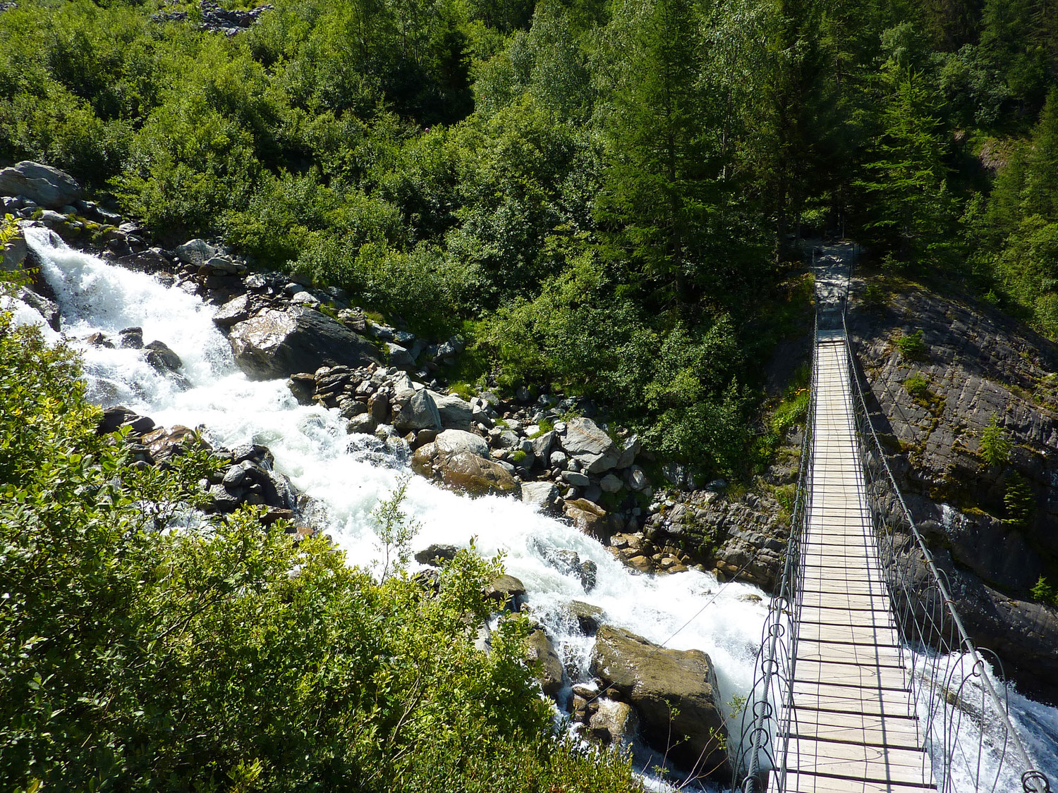 This is a short – but impressive – hike, which will take you around and across the 💦 Torrent de Bionnassay, and along the thematic path « sur les pas des premiers guides » (which recounts the history of alpinism) / a longer boucle, up to l’Are, will take you across the impressive Passerelle de Bionnassay (summer season only!);
