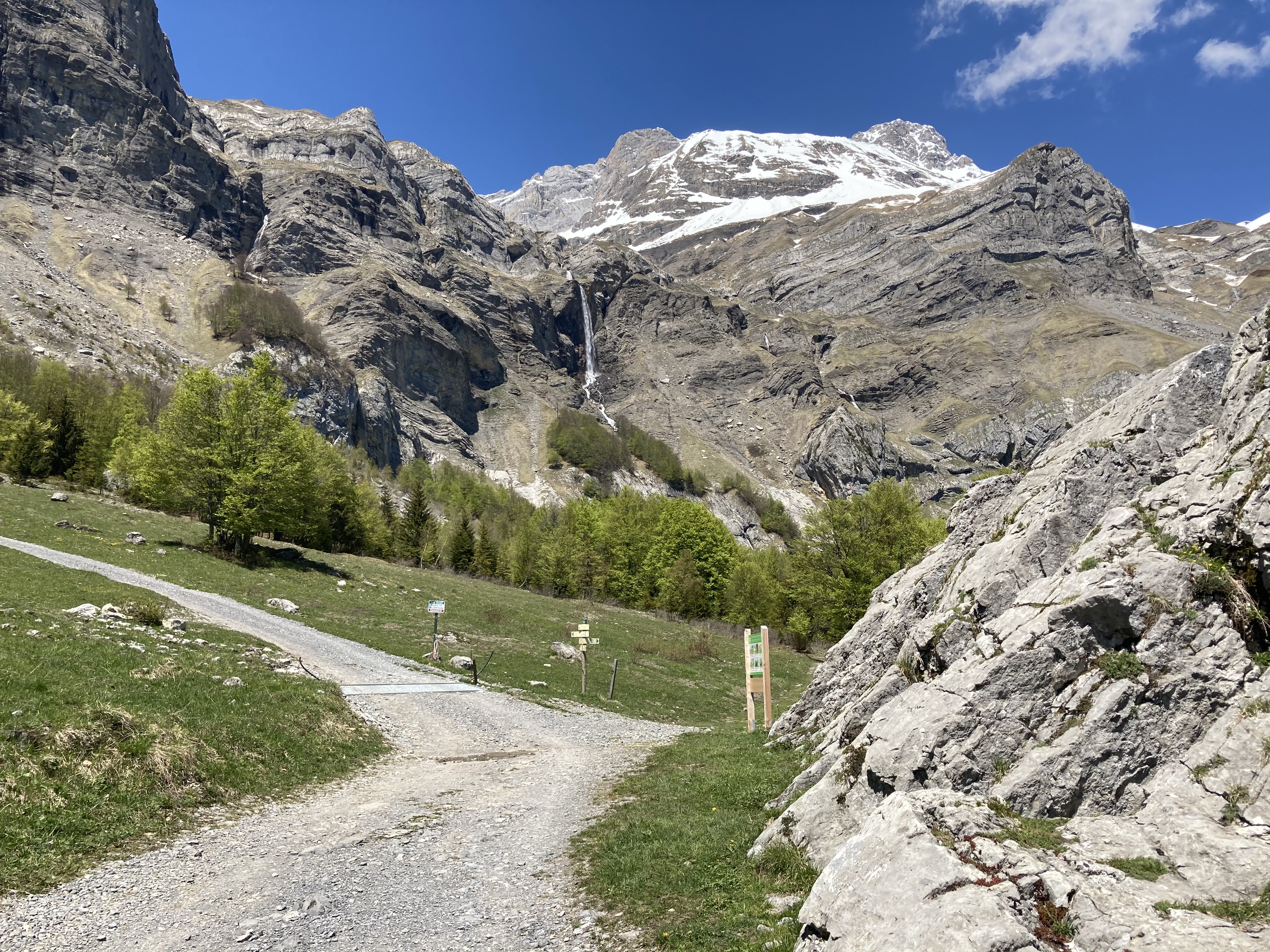 This is a very short hike, perfect for small walkers or families with baby-carriers or baby backpacks. Equally, with older and more competent hikers, the hike can be extended along the Vallon de Bérard and up to the Refuge Pierre à Bérard, where you might be rewarded with some spottings of marmots or ibexes (bouquetins). The walk starts just opposite 🚞 the train station in Le Buet, next to l’Hôtel du Buet; you then hike past the 🏚 hamlet of La Poya (beginner ski area in winter). There are shady paths along the way, and once you arrive at the 💦 Cascade de Bérard, you can relax at the ☕️ Buvette Cascade de Bérard. You can do this hike in summer (when 🌺 the vibrantly pink rhododendrons are spectacular!) or there are ❄️ snow-shoe routes to follow in winter;