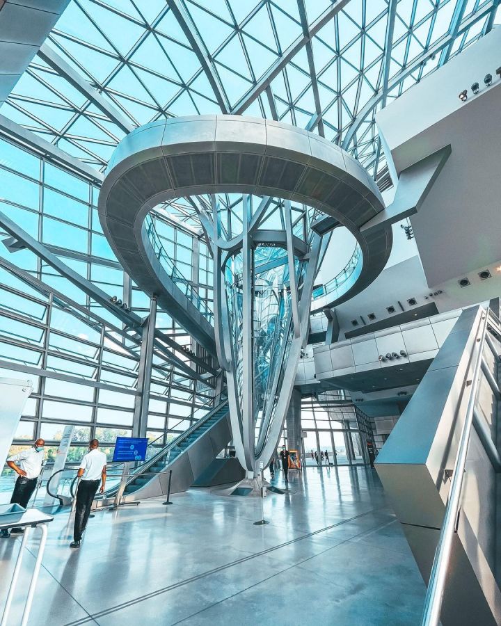 Coop Himmel(b)lau set out to build a dynamic and fluid museum, very much in touch with nature. The architects unified three elements in the design: le cristal, le nuage and le socle. The architects aimed to convey in their design “ l’infinie diversité des connaissances et la pluralité des vocations d’un espace mixte, un lieu de découverte, d’émerveillement, de partage des savoirs dédié à tous les publics “.