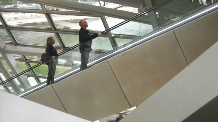 - le socle – this part of the structure is made of concrete, and it is upon this that le cristal and le nuage rest. Two levels are partly underground, housing two auditoriums, group access and private functions.