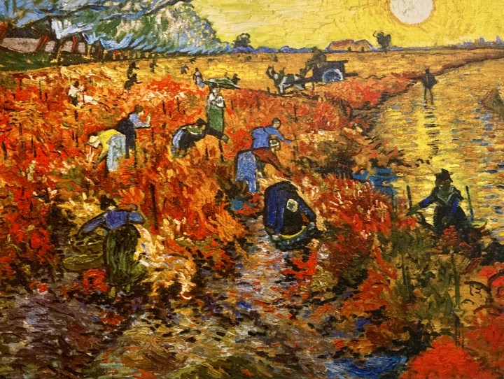 In this room, you learn that self-taught Van Gogh was a prolific worker, and painted an astonishing 900+ paintings (and another 1000+ drawings and sketches) in the last 10 years of his life . . . and yet sold only one of these in his lifetime: The Red Vineyards near Arles (1888). Bought by a collector in 1890, this painting now resides in the Pushkin Museum of Fine Arts in Moscow.