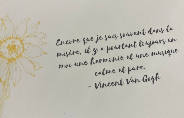 The evening after our visit, my husband and I discussed at length how this exhibition had made us feel. We both agreed (and we don’t always!) that it truly felt like being present in Van Gogh’s paintings, of seeing what he saw and of hearing what he heard, as he fervantly painted. And we also felt that we could sense his changing moods: his joy, his pain, but always his passion. As we know, Vincent Van Gogh (1853 – 1890), one of our masters of post-impressionism, was both a creative and tortured soul, and this conflict came through poetically, both visually and through the complementary 🎼 musical score.