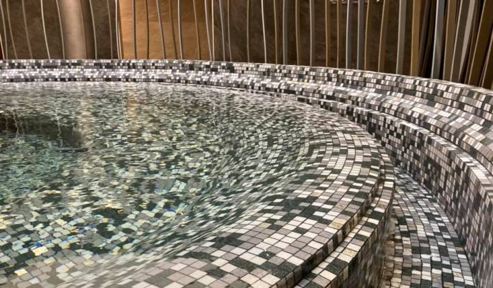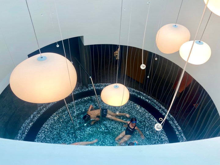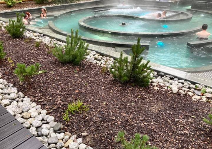 There are many different relaxing zones on the ground floor: 💦 pools (indoors and outdoors, amid a beautiful landscaped area), saunas at different temperatures, hammams . . .