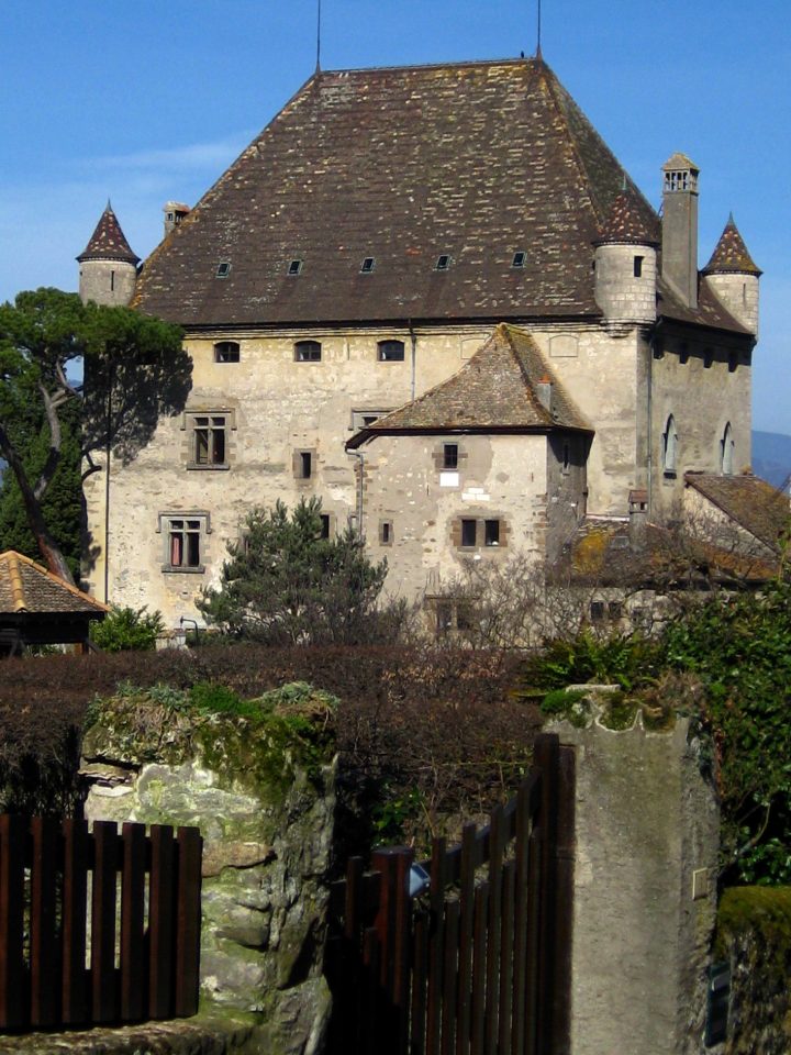 Château d’Yvoire – built in the 14th century by Comte Amédée V Le Grand, the castle was ravaged by fire in 1591, and it remained uninhabited until it was rebuilt as we see it today in the 20th century. Félix Bouvier d’Yvoire undertook several interior and exterior renovations, including the building of the roof and the corner watchtowers in 1939.