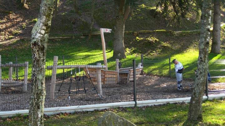 You can have a decent buggy stroll through the streets of medieval Yvoire (the steeper streets head down to the lake; don’t let go!), and along the quai of the Port de Plaisance, where you will also find a small playground on the grassy verge. You can exit Yvoire via this grassy knole, but this is not possible with a buggy, as there are steps.