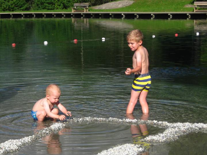 Once there, small children can paddle or play with pebbles . . . Older children can take out the mini boats, play in the playgrounds . . .