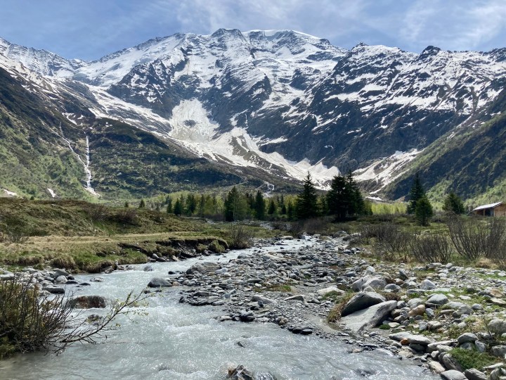 A hike from Champel is the shortest access on foot – and once at the Alpage de Miage, you have the choice of a couple of 💦 mountain torrents for paddling. Boy are these mountain streams cold (coming down from the glaciers above!) – they feed into the Torrent de Miage below.