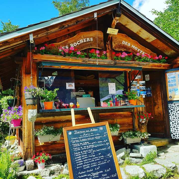 A hike to this charming buvette is great en famille (and you can get up close and personal with the ❄️ Glacier des Bossons!). This is a welcoming spot, with its own 🥬 little vegetable patch and hence colourful dishes. It is a short walk to get here, 🌲 through the forest, with some refreshing streams along the way. As well as snacks, you can book lunch or dinner (check opening hours).
