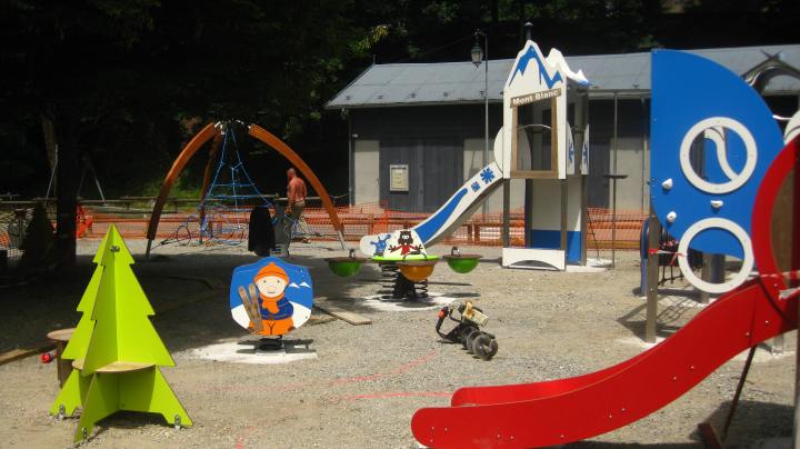 Saint-Gervais town centre has a delightful playground (renovated a few years ago) to keep your little ones active and happy. Located in the 🌳 Jardin du Mont-Blanc, the landscaping around the playground is itself lovely, with lots of grassy slopes, an old well and bandstand and some well-positioned benches to admire 🏔 the mountain views. The playground has as a theme 🚂 Le Tramway du Mont-Blanc, and children can play at driving their own tram! There is also a netted swing, a swing for tiny ones, a small trampoline, a climbing frame and a dameuse (snow plough)!