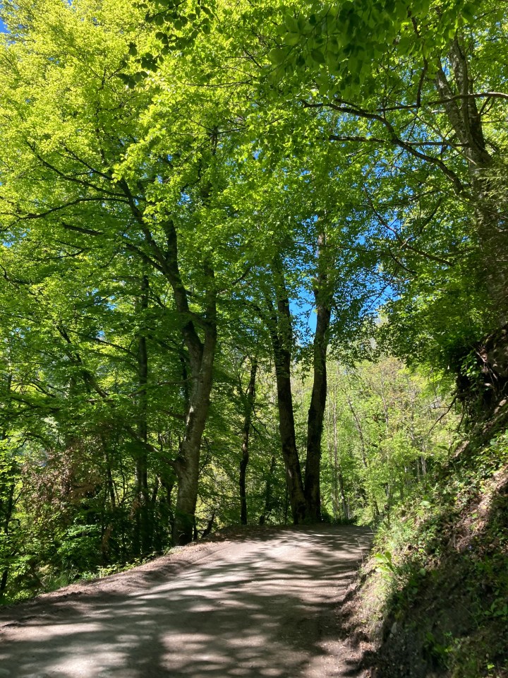 You walk past the Cascade des Fours and then the return section of the boucle commences . . . for the final descent you’ll have the shade of
