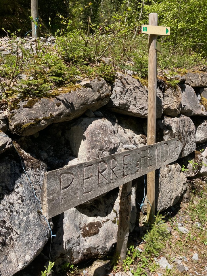 Legend has it that the Pierre Fendue once sheltered a golden thread, which would explain why it was split in two! (réf. Pierre Millon Alpes Magazine, 1998)