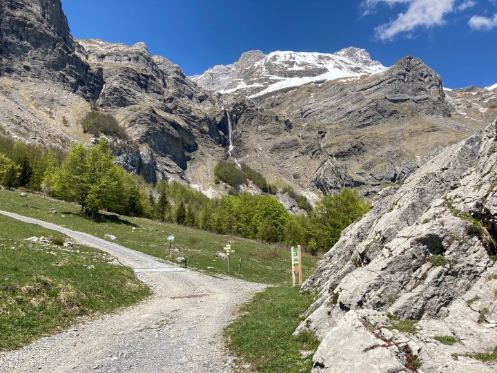You’ll cross le Pont de Bellecombe, with its little torrent (which is quite active during the spring melt!).