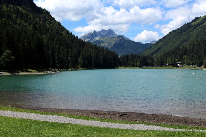 Of these 3 Haute-Savoie lakes, 💦 Lac de Montriond has perhaps the most picturesque and pristine setting: located in the Vallée des Aulps, within the ⛰ Geopark Chablais (and not too far from the Pays du Mont-Blanc!), it is nestled under majestic cliff faces, and has calm green waters.